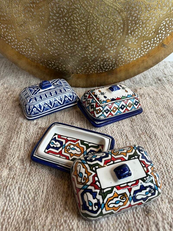 Uit Fes handbeschilderd, alles met een ander motief. Samen matchen ze prachtig.