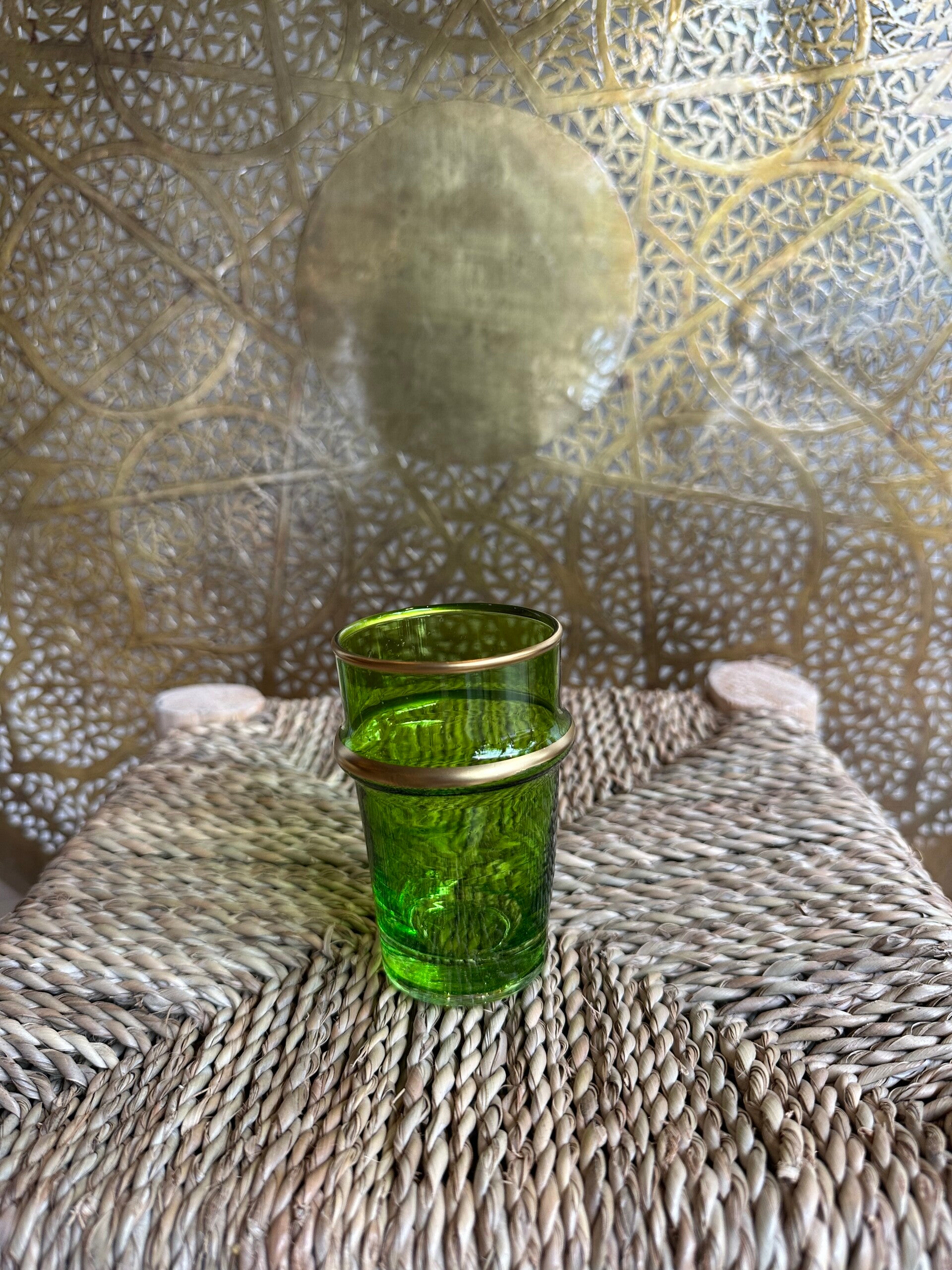 Handgeblazen (thee)glas. Met een laagje zand erin ook zeer geschikt voor een waxinelichtje.
