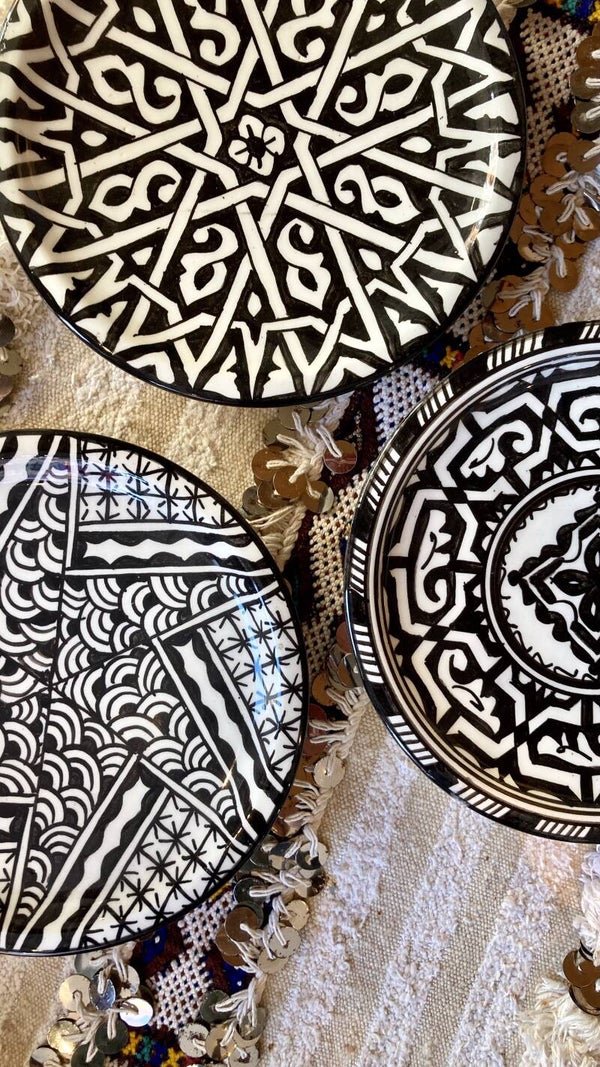 Ieder bordje is handbeschilderd met een ander motief. Samen matchen ze prachtig.
