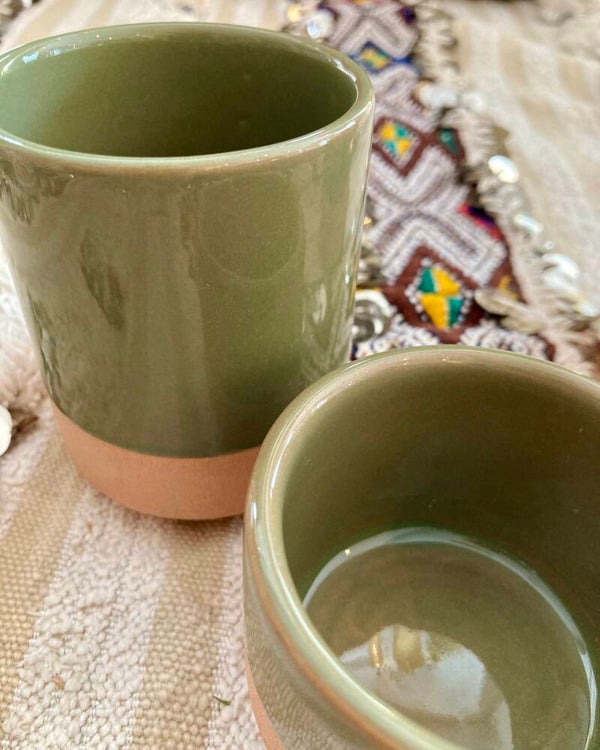 Handgemaakt Marokkaans KeramiekOlijfgroen kopje geschikt voor warme en koude dranken. Ook leuk om bijv. een cactusje in te zetten.