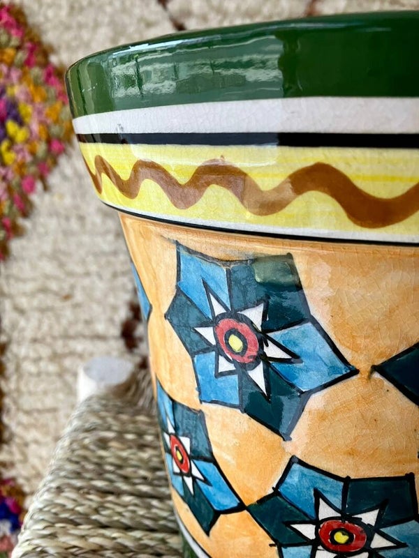Handbeschilderde bloempot uit Safi. One of a kind.