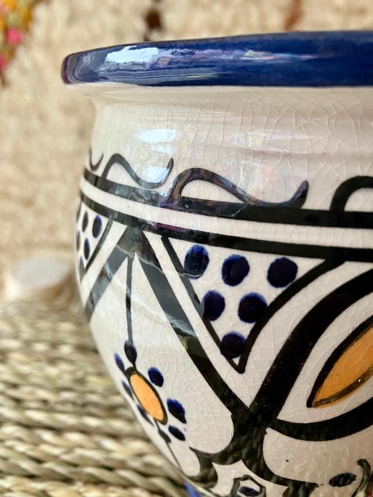 Handbeschilderde bloempot uit Safi. One of a kind.